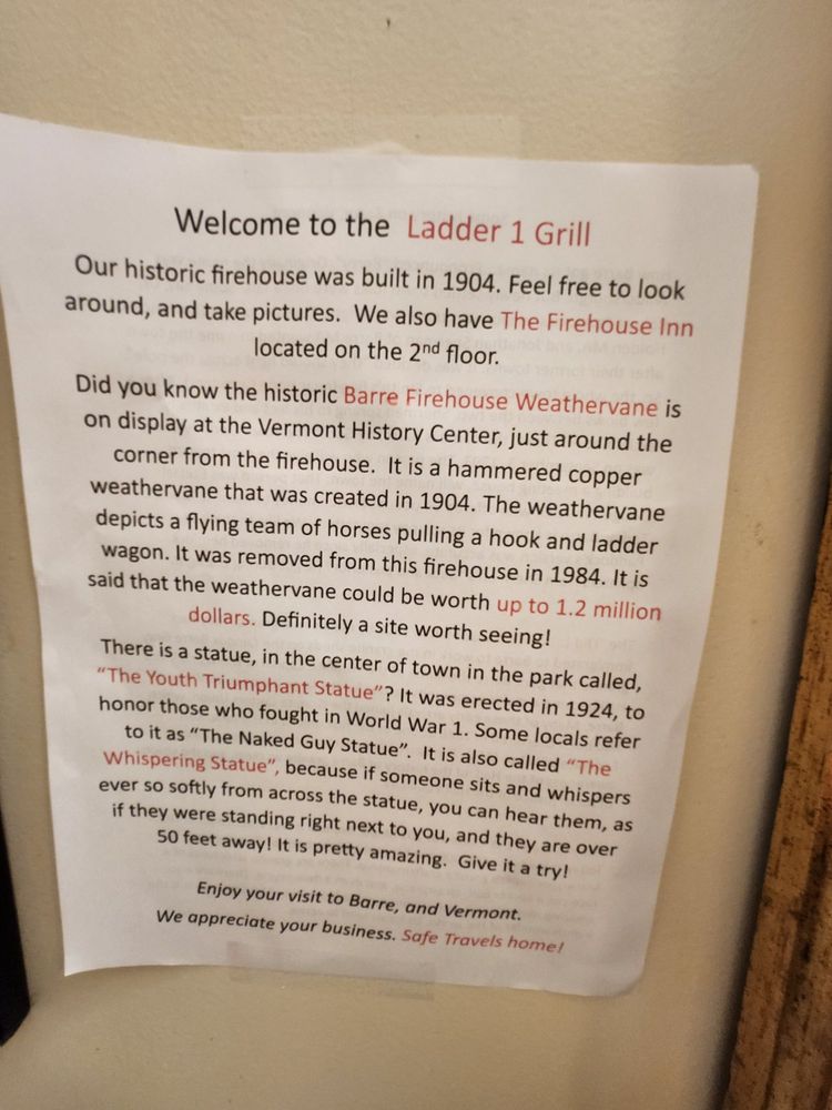 Welcome to Ladder 1 Grill, an inviting American eatery nestled in Barre, Vermont. Known for its extensive menu, this casual spot offers a diverse selection that caters to every craving, from hearty cold hero sandwiches to comforting dishes like homemade meatloaf and shepherd's pie.